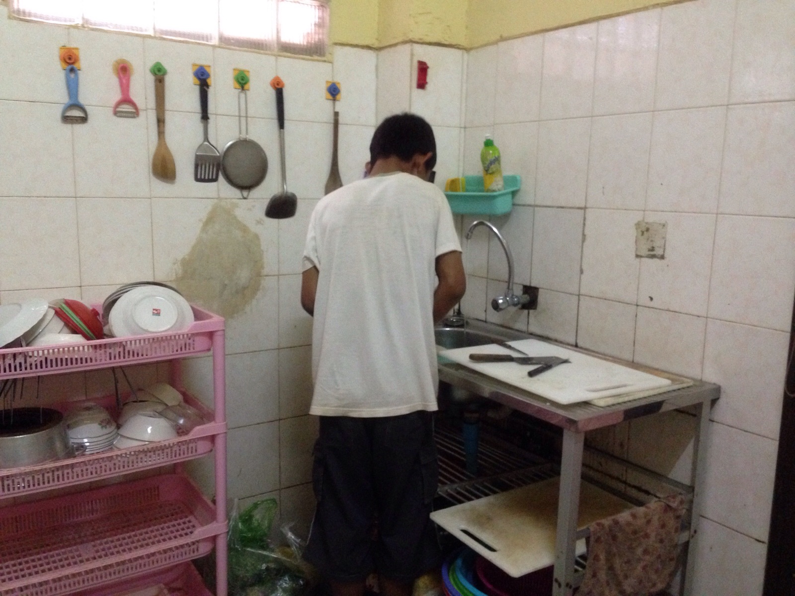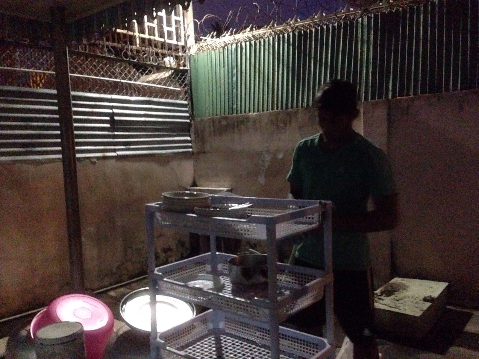 外で洗いものをしています。