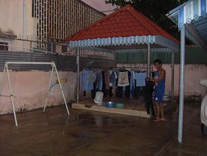 夕方5時過ぎた頃から、雨になりました。 屋根のあるところに、洗濯物を移動して・・・。 雨の中、まだ洗濯している子ども達もいます。