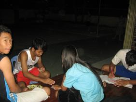 マンゴーも落ちてくるので、下から楽しみに見ている子ども達(写真右側)。