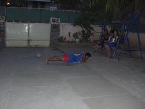 カンボジア孤児院の子ども達の通う学校では、3月に学校対抗試合があり、孤児院からも、バスケットボールと高飛び、幅跳び、砲丸投げに5人が選ばれました。写真は選ばれた選手の2人と試合に備えて、特訓中の様子。