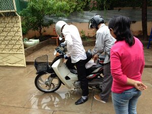 (※写真は、雨の中で、バイクに乗って出張に 出かけるスタッフさん達です。)